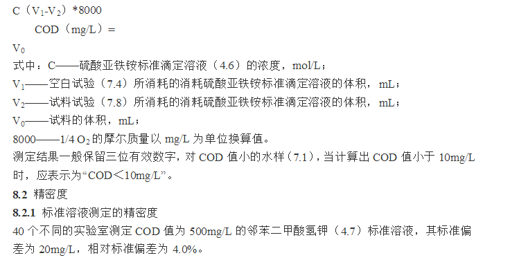 以mg/L計的水樣化學(xué)需氧量,計算公式如下:
