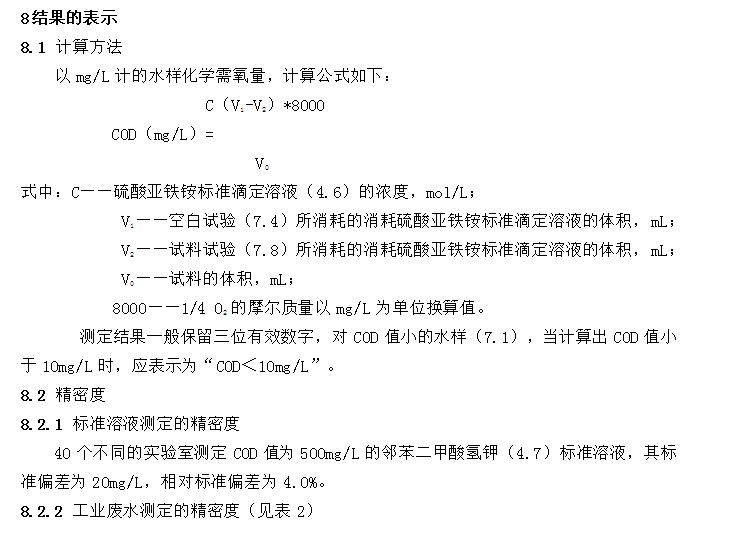 本標準適用于各種類型的含COD值大于30mg/L的水樣,對未經稀釋的水樣的測定上限為700 mg/L。超過水樣稀釋測定。