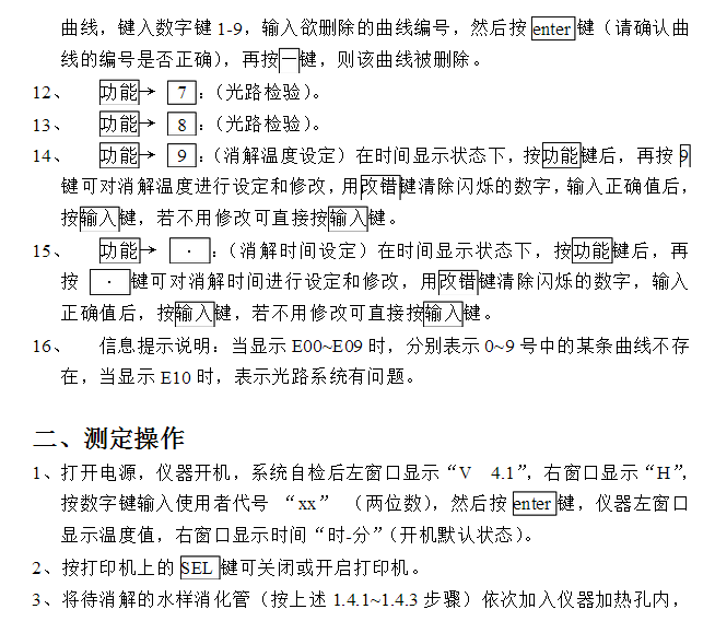 1.5.6 反應(yīng)管宜用10%的硫酸清洗,不得用重鉻酸鉀洗液及其它合成洗滌劑洗刷,以免鉻化合物或洗滌劑粘附在試管內(nèi)壁影響測(cè)定結(jié)果。 1.5.7 冷卻時(shí)應(yīng)仔細(xì)操作,防止冷卻水進(jìn)入反應(yīng)管或沾污管口、管塞,影響測(cè)定結(jié)果。