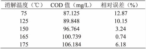 COD 的測定值逐漸接近理論值,測定的相對誤差逐漸變小,但當溫度達到 165℃ 時,再升高溫度,COD