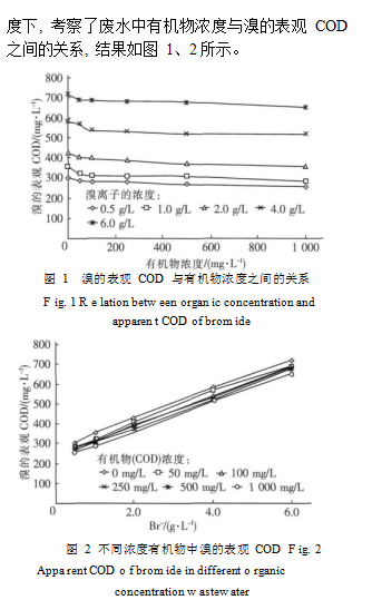 為了進一步探索溴的表觀 COD 與有機物濃度之間的關系, 在不同的溴離子濃度和不同有機物濃