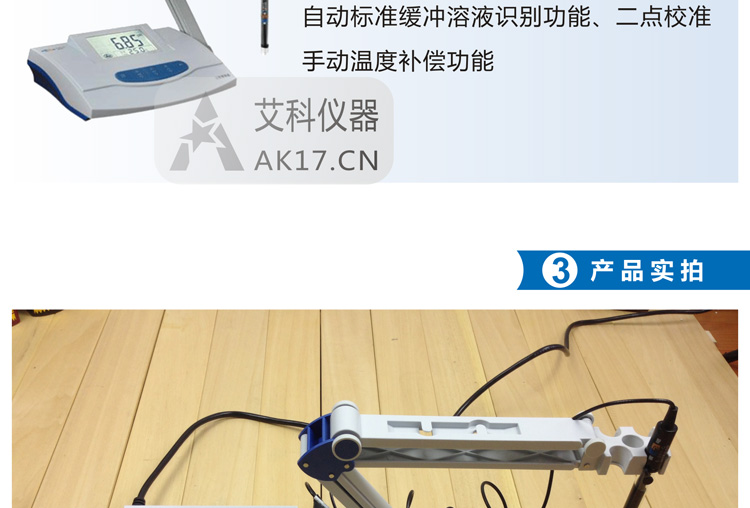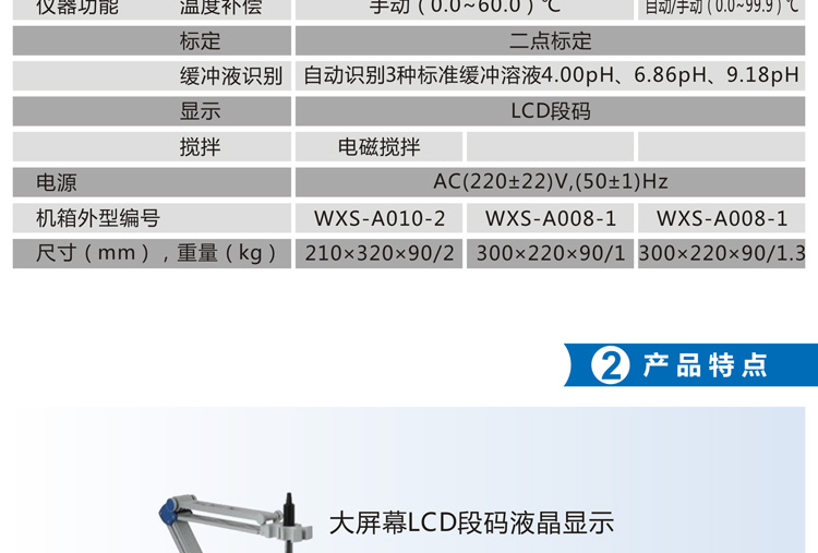 2.自動標準緩沖溶液識別功能、二點校準